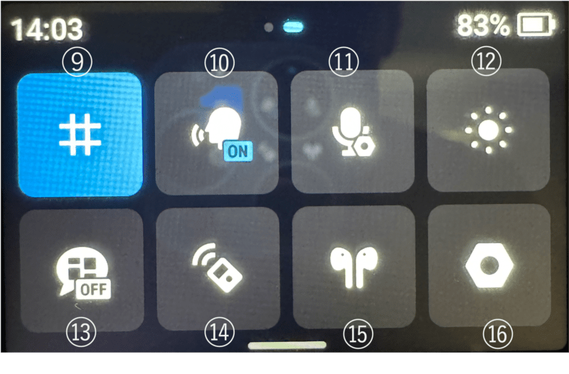 メイン画面からタッチスクリーン上端から、下にスワイプすると、アイコンメニューが表示される。