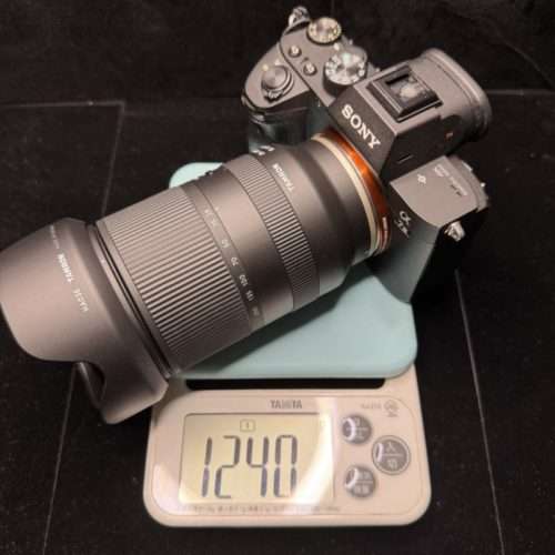 a7IIIに28-200mmを取付ると1240gで、ソニー24-240mm取り付けると1445gより200g軽量。